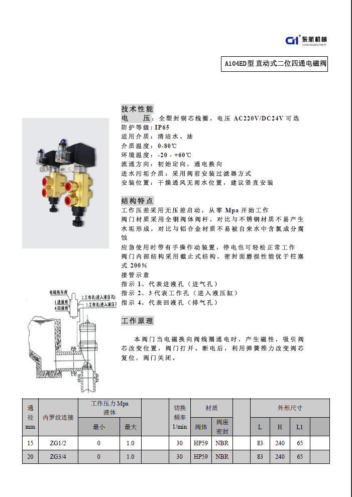 排泥閥用全銅電磁閥A102ED 防水等級(jí)IP65 全銅閥體